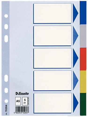 SEPARADORES ESSELTE PP A5 5 pestañas 6 taladros