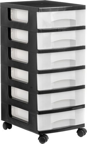 TORRE DE ALMACENAJE CON RUEDAS 6 CAJONES NEGRO