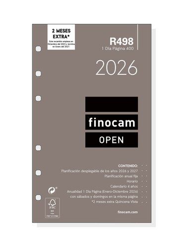 RECAMBIO AGENDA ANUAL (2026) FINOCAM R498 OPEN 400